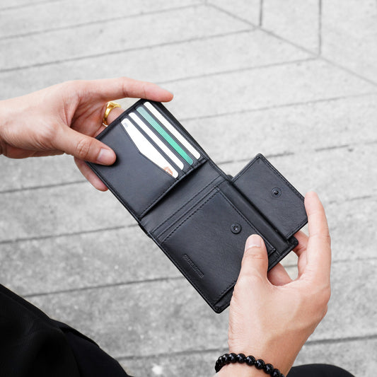 Folio : Leen mini wallet กระเป๋าสตางค์ใบสั้นสีดำ หนังแท้-รหัส18066