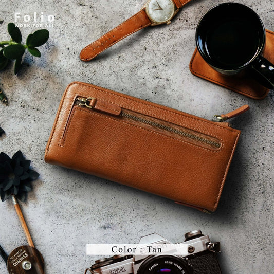 Folio : Tuff Zipper Long Wallet กระเป๋าสตางค์ใบยาว แบบซิป ทำจากหนังแท้-10121