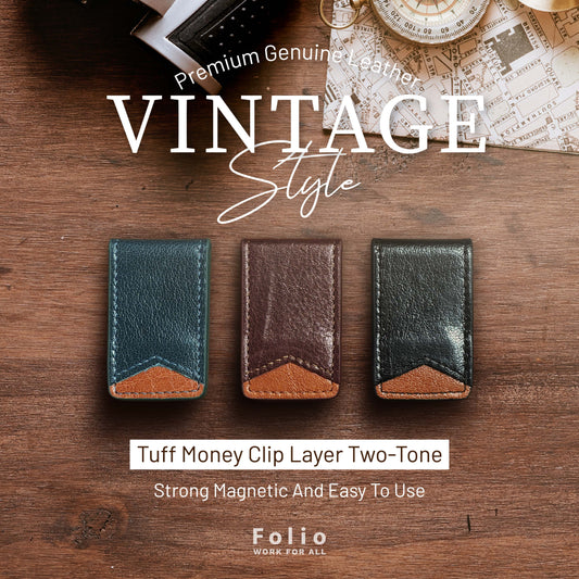 Folio : Tuff Money Clip Two-Tone ที่หนีบธนบัตรหนังแท้ แม่เหล็กแข็งแรง บริการปั้มชื่อฟรี-รหัส10541