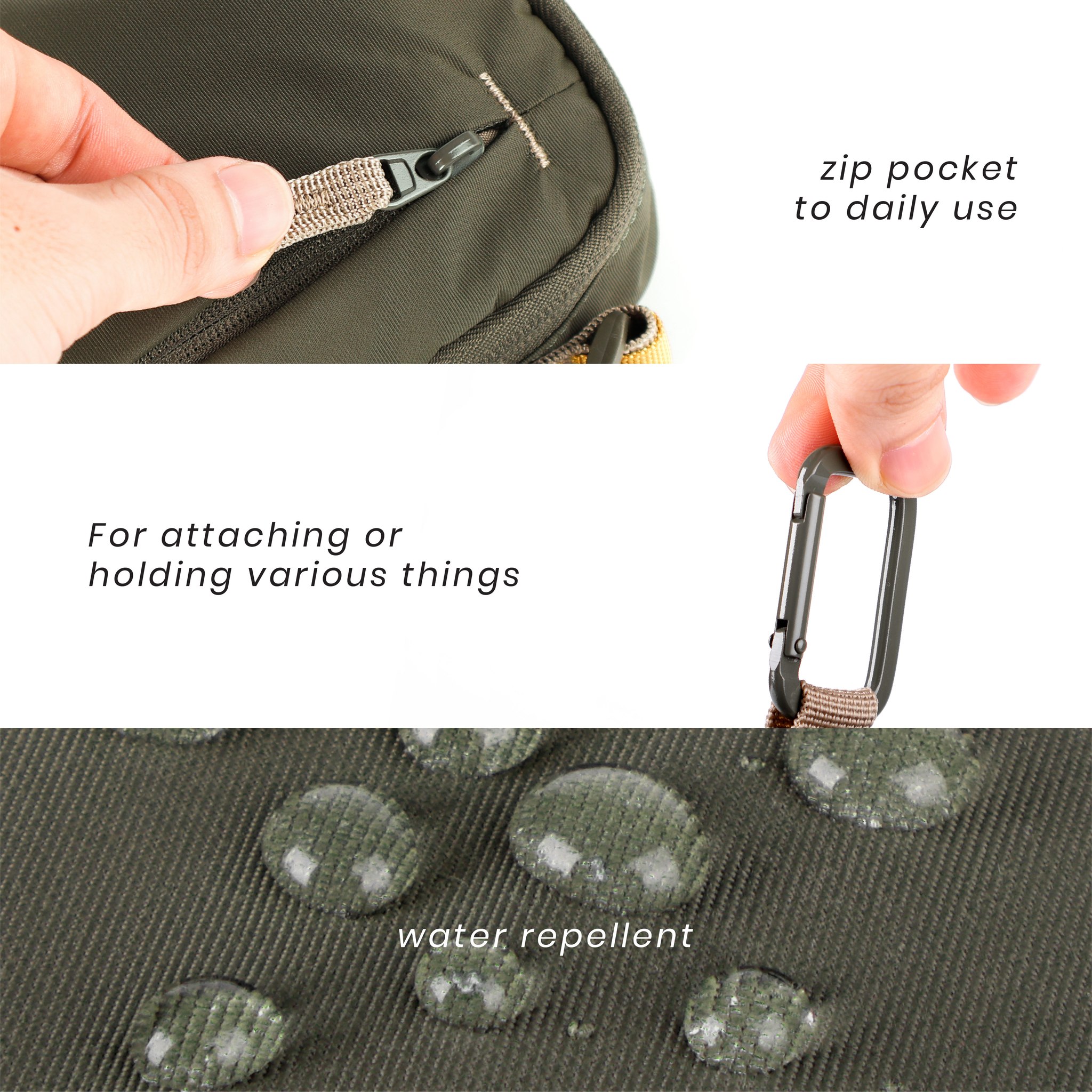 • ดีไซน์แบบ Add-on ใช้งานได้หลากหลาย มาพร้อมตะขอเกี่ยว แข็งแรง สำหรับคลิปเข้ากับกระเป๋าใบอื่น, tote bag, กระเป๋าคอม หรือแม้แต่หูกางเกง